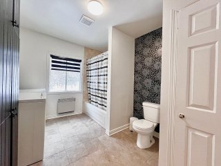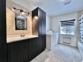 Une salle de bain complète dessert l'étage principal. Les espaces sont fonctionnels et bien divisés, tout en laissant place à des possibilités de mise à jour selon les goûts de l'acheteur.