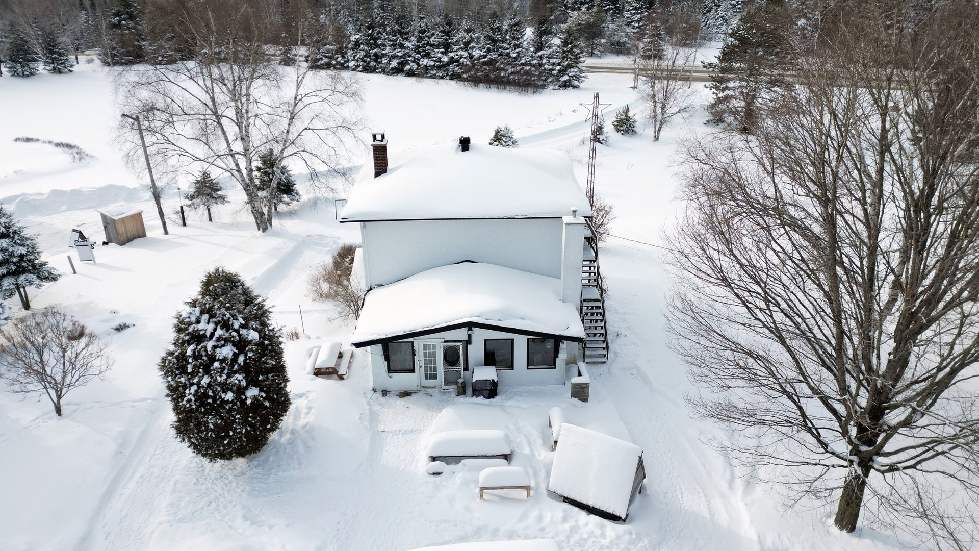 Propriété offrant un mode de vie unique, où nature, autonomie et possibilités de développement se rencontrent. Située sur un vaste terrain majoritairement boisé, cette propriété se distingue par le cachet unique de sa résidence et l'ampleur et la diversité de ses installations.